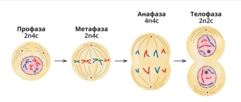Итого, клетка разделилась пополам, а хромосом меньше не стало. В каждой созданной клетке их осталось столько, сколько и было изначально в материнской клетке. Почему так? Во время синтетической фазы клетка произвела вдвое больше ДНК.