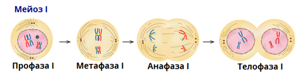 - Анафаза I характеризуется редукцией, когда число хромосом сокращается в 2 раза. Так что полюса клетки имеют гаплоидный набор 1n2c, а сама клетка – 2n4c.