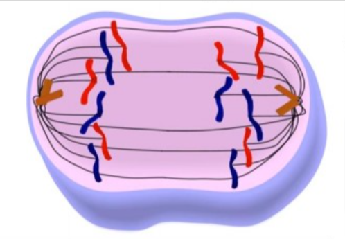 - Также, начиная с полюсов, постепенно распадается веретено деления, которое уже выполнило свою функцию.